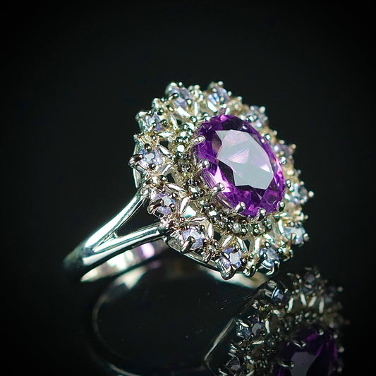 Sterling Silver Diamond, Amethyst and Tanzanite Ring
