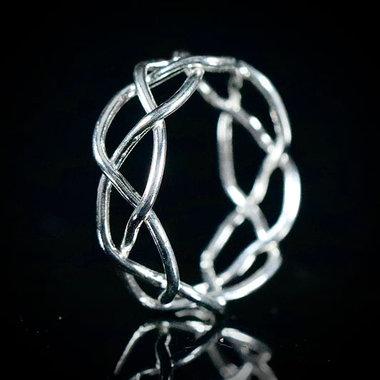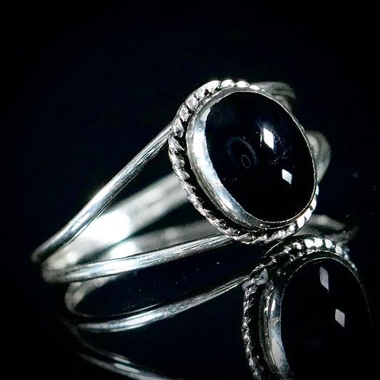 Sterling Silver Synthetic Onyx Braided Oval Ring